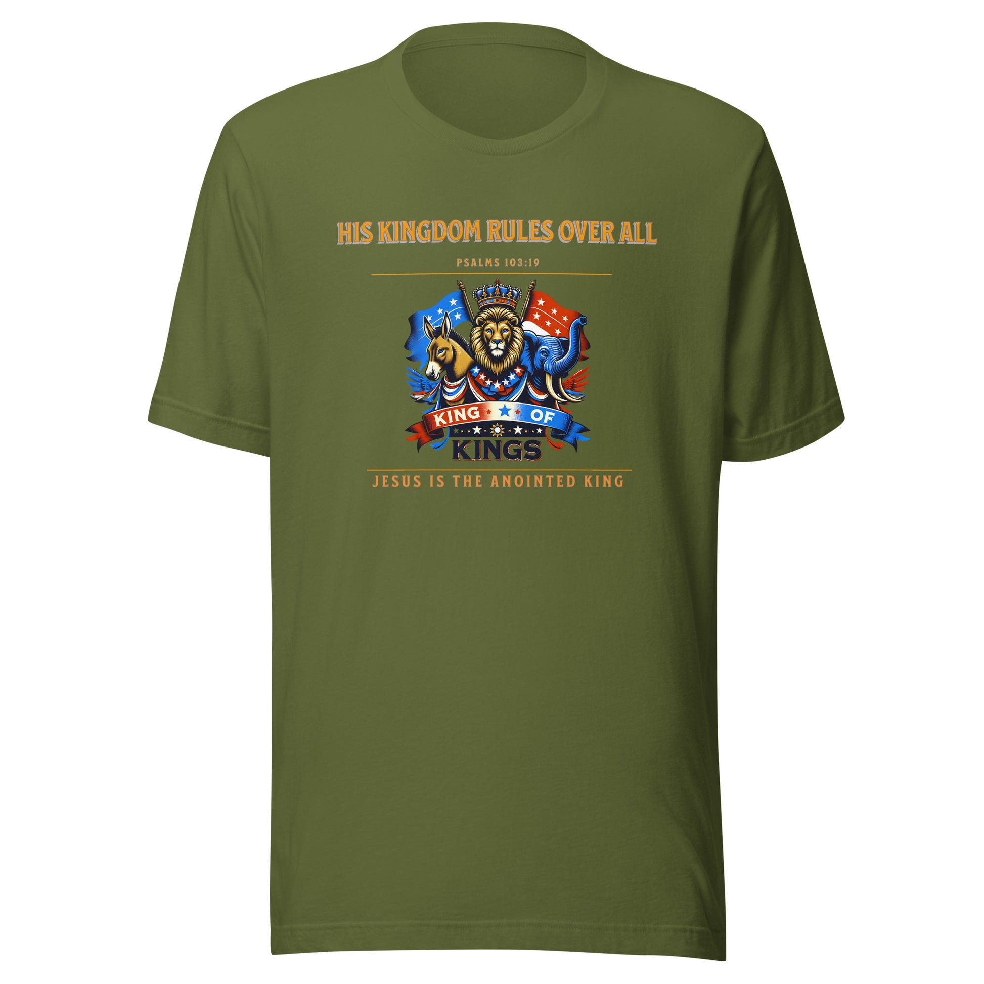 Declare your faith boldly with our 'His Kingdom Rules' graphic T-shirt. This powerful design is a reminder that God's reign is supreme, offering strength and reassurance in every season of life. This t-shirt is everything you've dreamed of and more. It feels soft and lightweight, with the right amount of stretch. It's comfortable and flattering for all.